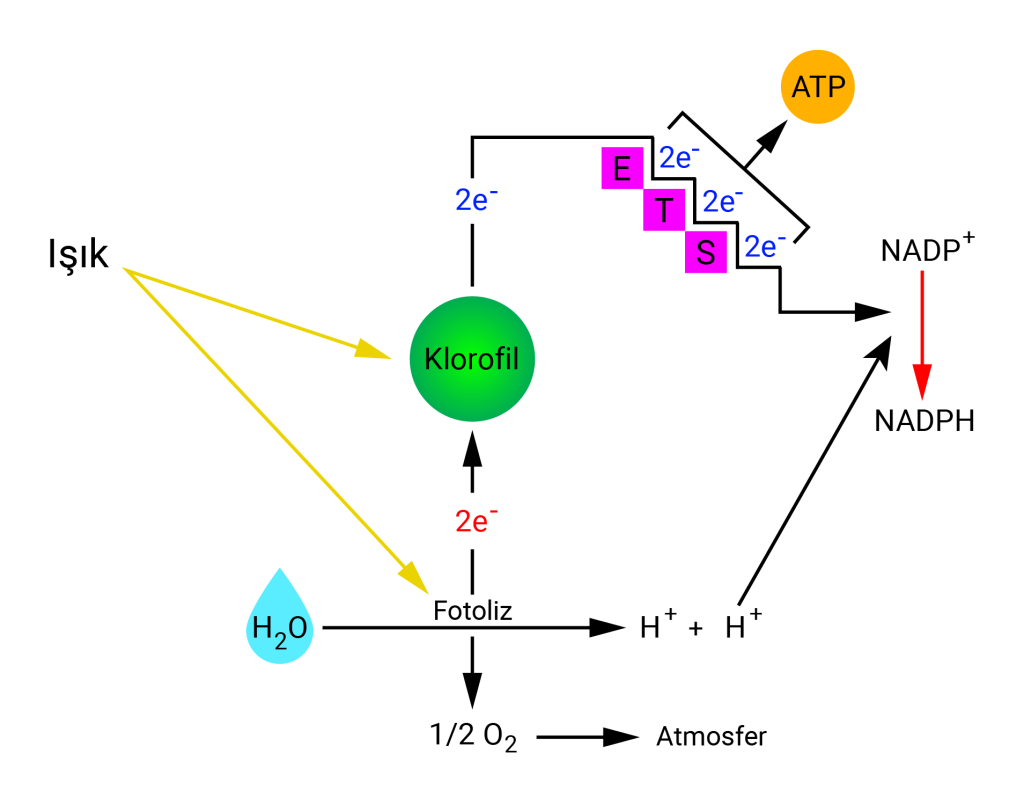 - Klorofilin kaybettiği elektron suyun fotolizi sonucu açığa çıkan elektrondan karşılanır.